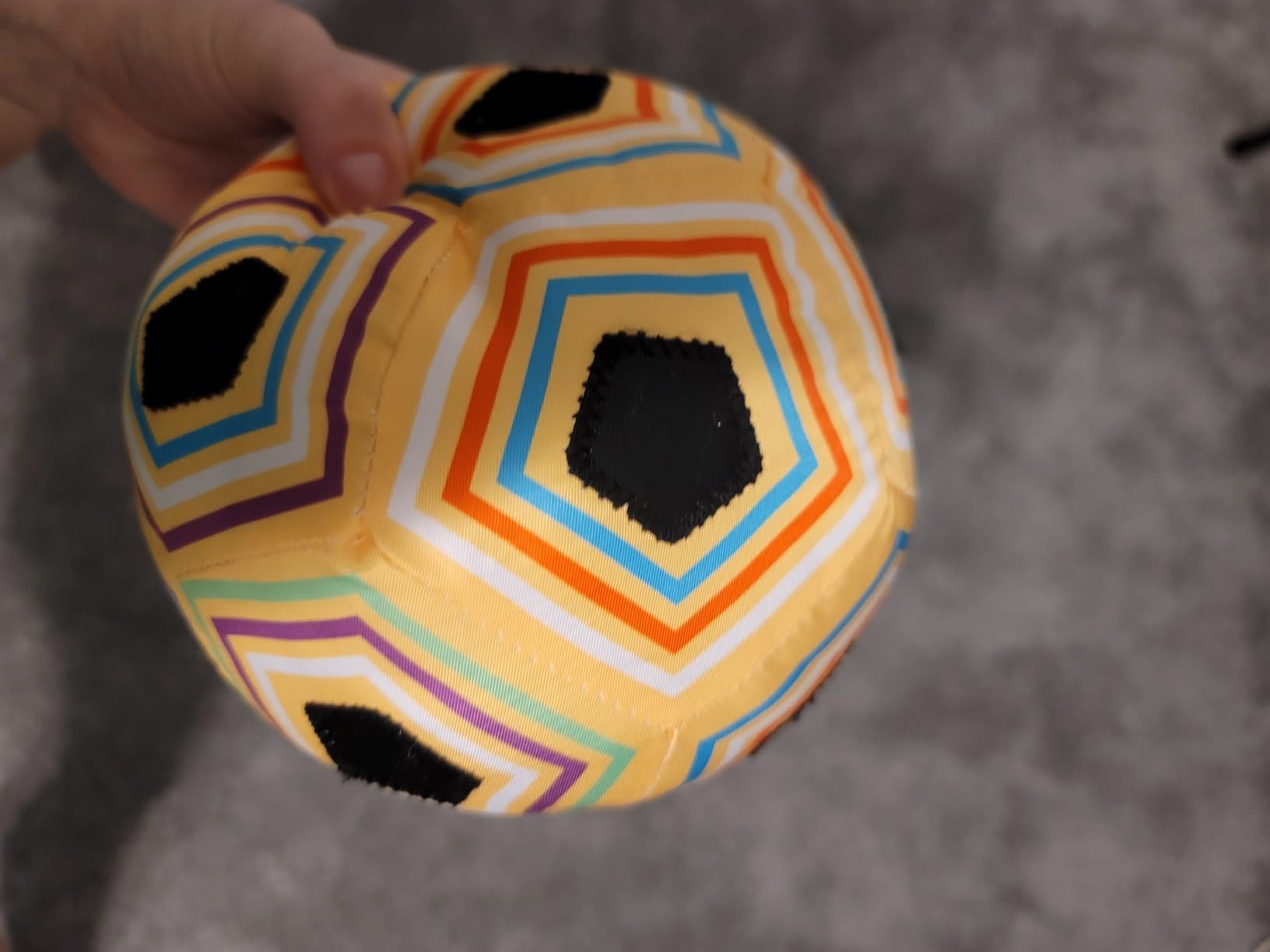 The ball is covered with multiple Velcro-style patches that grip instantly to the target sheet — perfect for practicing accuracy and sharpening shooting technique.